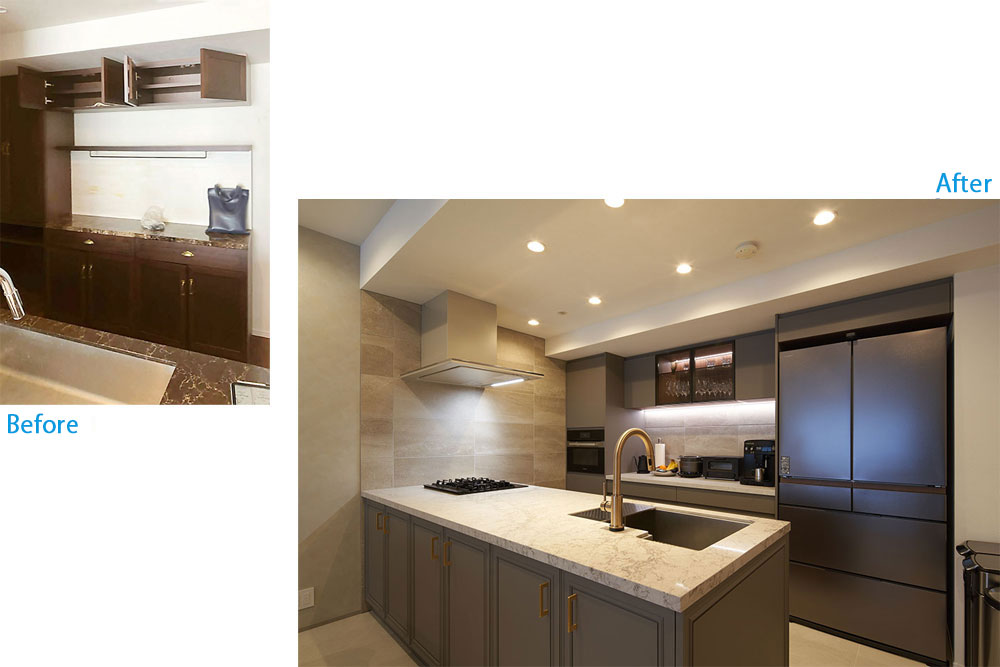 一番のこだわりはキッチンで、もともとのお住まいのオープンなアイランドキッチンがお気に入りの場所だったので、新しいお住まいでもそこは再現したいとのご要望でした。